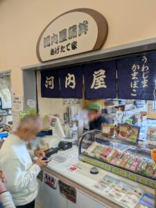 追加でみかんを買ったあと、名物じゃこ天を買い食いしました。
