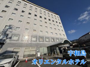 二泊三日お世話になる【宇和島オリエンタルホテル】さん。駐車場は平面なため楽ちん。