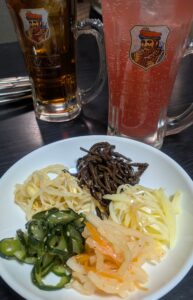 まずは人気のナムル盛り合わせとブラッドオレンジサワー。※主人は安定の烏龍茶