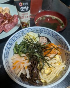 ナムルたっぷり……被ってるやん!と思いつつも、主人が先程のナムルをここぞとばかりに追加したことで、かなりボリューミーな丼になりました。コチュジャン好きなだけ絡めて美味かった!