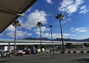 駅前のヤシ並木に心浮き立つ。あ〜、やっぱ暖かいところはいいな。気持ちがアガる。