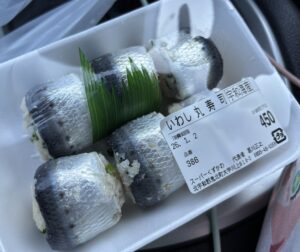 国道320号線沿いにあるこちらのスーパーは鮮魚を扱っているとのことで、チェックしていました。残念ながら時間が早すぎて、お刺身にはありつけませんでしたが、気になっていた【いわし丸寿司】をゲットすることができました。
