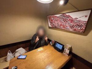 見事な鯛の絵が飾られた奥の席へ案内されました。注文はタッチパネル式でじっくり選ぶことが出来ます。