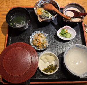 そして本命の鯛めし到着。主人は【鯛めし、さつまよくばりセット】(2000円)を注文しました。