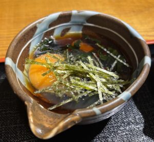 ちなみに【さつま】とはアジやエソなどの白身魚を焼いてほぐし、香ばしい焼き味噌と鯛の骨でとった出汁、刻みこんにゃくや薬味(みかんの皮、ごま、ネギ、海苔など)を混ぜ合わせ、熱々のご飯にかけて食べる、宇和島に古くから伝わる郷土料理です。