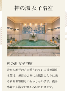 とはいえ、私たちは二度目の道後温泉で、取り敢えずお風呂に入りたかっただけなので、入浴料のみ700円をチョイスしました。