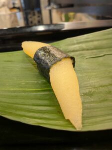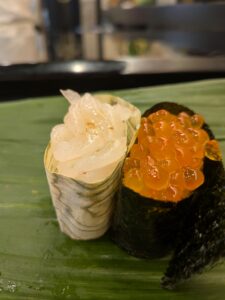 私はおまかせ握り(寿)、主人は(喜)を注文。店の前は、オープン前から予約客の車で賑わってました。