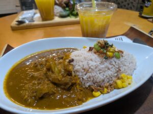 私は牛すじを四時間煮込んだカレーにしました。とろっとろ……うまい。