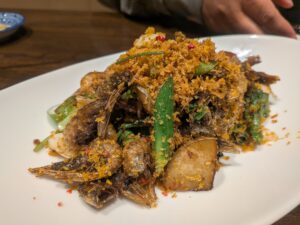 ガス海老のカリッと感とじゃがいものホクッと感。エビの香ばしさと芋の甘さを黄金スパイスがコーティング。めちゃ美味いです。