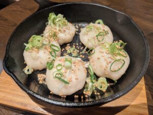 ディナー限定の焼き小籠包。当然ながら熱々Soupをいただく→火傷する。ともあれスープ美味しいです。
