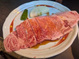 見た目で美味しそうと感じる美しいサシ。えげつない勢いで皿が並ぶため焦る。